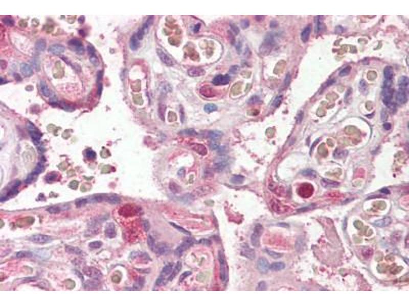 Usage: Peptide ELISA: antibody detection limit dilution 1:32000. Western blot: Preliminary experiments gave an approx 70kD band in Human Adipose and Uterus lysates after 0.1 μg/mL antibody staining. Please note that currently we cannot find an explanation in the literature for the band we observe given the calculated size of 58.7kD according to NP_068741.1. The 70kD band was successfully blocked by incubation with the immunizing peptide. -