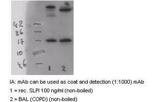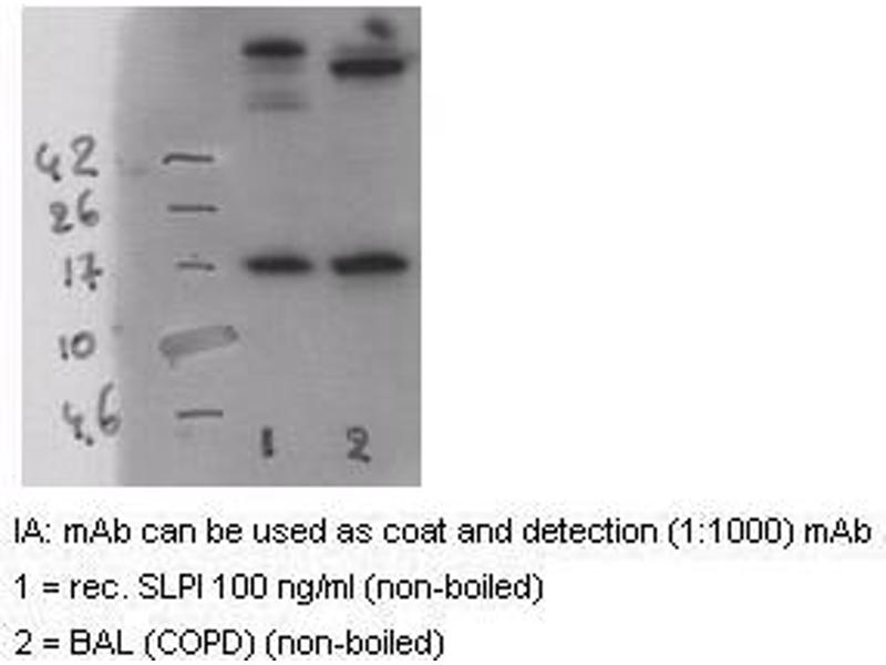 This anti-SLPI antibody is a Mouse Monoclonal antibody detecting SLPI in WB, IP, IHC (p), IHC (fro) and EIA. Suitable for Human.