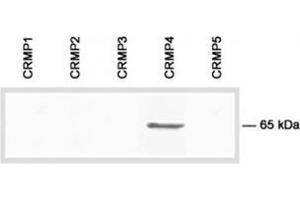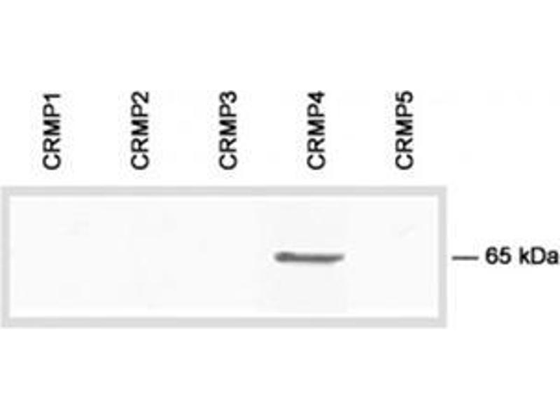 The collapsin response mediator protein (CRMP) family of five cytosolic phosphoproteins are highly expressed throughout brain development. The functions of CRMPs encompass signal transduction in developmental guidance cues as well as multiple cellular and molecular events involved in apoptosis/proliferation, cell migration, and differentiation. In the adult brain, the expression of CRMPs is dramatically downregulated. However, CRMPs remain expressed in structures that retain their capacity for differentiation and plasticity. The expression of CRMPs is altered in neurodegenerative diseases, and these proteins may have a role in the physiopathology of the adult nervous system.Synonyms: CRMP-4, Collapsin response mediator protein 4, DRP-3, DRP3, Dihydropyrimidinase-related protein 3, TUC-4, ULIP, ULIP-1, ULIP1, Unc-33-like phosphoprotein 1
