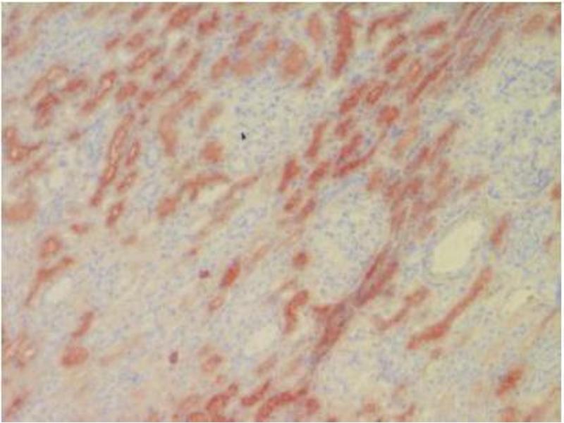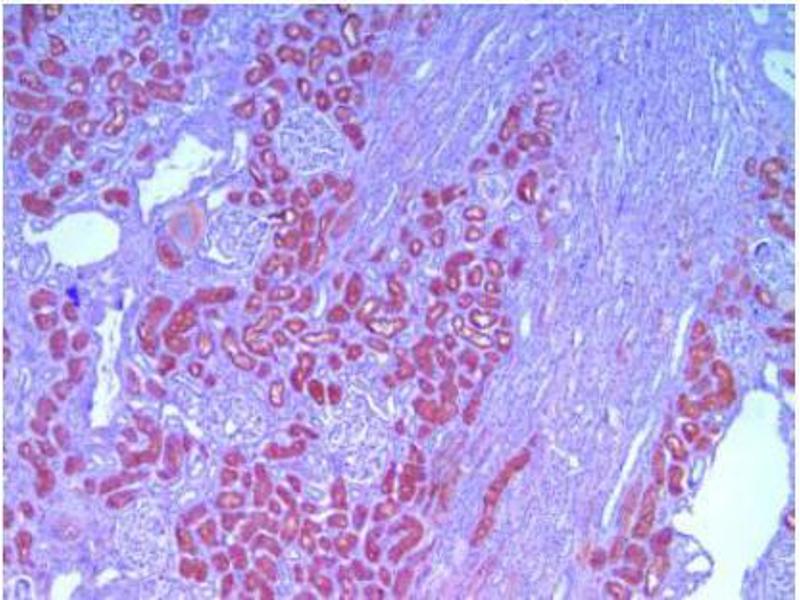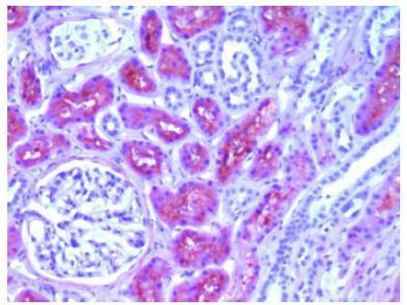 The L-FABP protein is derived from the human FABP1 gene. FABPs are small intracellular proteins (~13-14 kDa) with a high degree of tissue specificity that bind long chain fatty acids. They are abundantly present in various cell types and play an important role in the intracellular utilization of fatty acids, transport and metabolism. There are at least nine distinct types of FABP, each showing a specific pattern of tissue expression. Due to its small size, FABP leaks rapidly out of ischemically damaged necrotic cells leading to a rise in serum levels. Ischemically damaged tissues are characterized histologically by absence (or low presence) of FABP facilitating recognition of such areas. L-FABP is localized in the liver, kidney and intestinal epithelium.Synonyms: FABPL, Fatty acid-binding protein 1, L-FABP, Liver-type fatty acid-binding protein