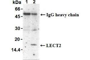 The Mouse Monoclonal anti-LECT2 antibody (Clone G2A5) (ABIN1108032) specifically detects LECT2 in IP.