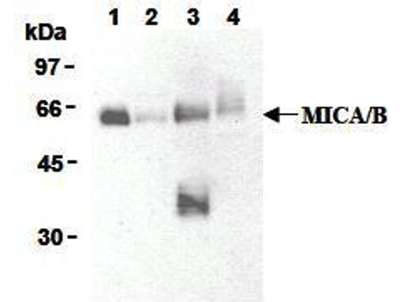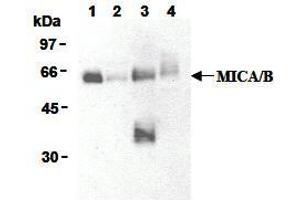 - This antibody reacts with MICA/B. The epitope was mapped to the helical surfaces of the MICα1α2 platform domain.
