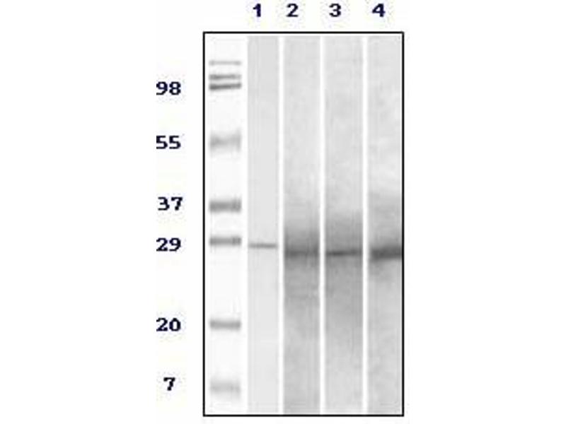 - Members of the Ras-related superfamily of GTP binding proteins, which includes Ras, Rho, Rab and ARF subfamilies, exhibit 30-50 % similarity with Ras p21. Rab proteins play an important role for either in endocytosis or in biosynthetic protein transport. The possibility that Rab proteins might also direct the exocytosis from secretory vesicles to the plasma membrane is supported by the observation that in yeast, the SEC4 protein, which is 40 % similar to Rab proteins, is associated with secretory vesicles.Rab proteins located on the cytoplasmic face of organelles and vesicles, rab proteins are involved in intracellular membrane fusion reactions. Rab25 was cloned from a gastric parietal cell cDNA library and is expressed in epithelial tissues such as the gastrointestinal mucosae, kidney, and lung, which encoded a protein of 28 kDaSynonyms: CATX-8, CATX8, Rab-25, Ras-related protein Rab-25