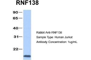 - The immunogen for anti-RNF138 antibody: synthetic peptide directed towards the C terminal of human RNF138.