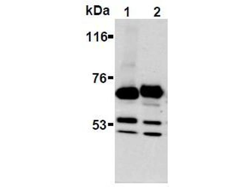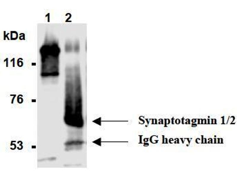 Synaptotagmins are a family of at least 15 Ca2+-binding, membrane-trafficking proteins that act as calcium sensors regulating neurotransmitter release. Synaptotagamins are expressed in both vesicular and plasma membranes where they are involved in lipid rearrangements required during synaptic vesicle fusion. Synaptotagmins also interact with calcium channels, sodium channels, b-SNAP, neurexins, and other neural proteins in the absence of Ca2+, suggesting a role in presynaptic functions. Synaptotagmins exhibit differential expression, with synaptotagmins 1-5 expressed primarily in neural and endocrine tissues. Northern blots in murine brain tissue suggest synaptotagmin 1 is primarily expressed in rostral brain regions but has low expression in regions related to motor functions.Synonyms: SVP65, SYT, SYT2, Synaptotagmin I, Synaptotagmin II, Synaptotagmin1, Synaptotagmin2, Synonyms: SYT1, SytI, SytII, p65