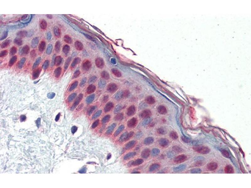 TCF7L1 participates in the Wnt signaling pathway. It binds to DNA and acts as a repressor in the absence of CTNNB1, and as an activator in its presence. It is necessary for the terminal differentiation of epidermal cells, the formation of keratohyalin granules and the development of the barrier function of the epidermis. TCF7L1 down-regulates NQO1, leading to increased mitomycin c resistance.Synonyms: HMG box transcription factor 3, TCF-3, TCF3, Transcription factor 7-like 1