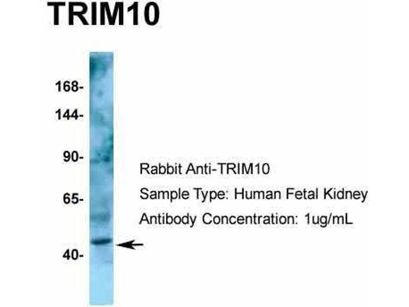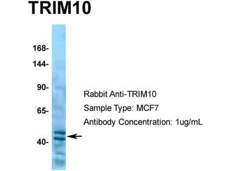 The immunogen for anti-TRIM10 antibody: synthetic peptide directed towards the C terminal of human TRIM10