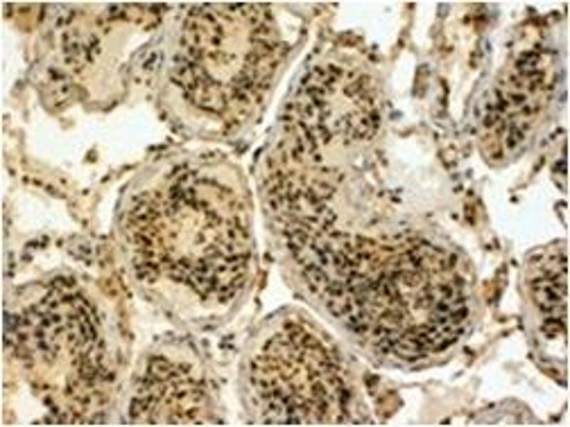 The Goat Polyclonal anti-UBR5 antibody (ABIN1109445) specifically detects UBR5 in WB, IHC (p), IP and EIA. The antibody is reactive with Human, Mouse, Cow, Rat, Pig and Rabbit samples.