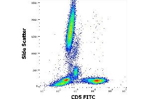 CD5 Molecule,CD5 antigen (T1, 67 kDa) is a human cell surface T-lymphocyte single-chain transmembrane glycoprotein. CD5 is expressed on all mature T-lymphocytes, most of thymocytes, subset of B-lymphocytes and on many T-cell leukemias and lymphomas. It is a type I membrane glycoprotein whose extracellular region contains three scavenger receptor cysteine-rich (SRCR) domains. The CD5 is a signal transducing molecule whose cytoplasmic tail is devoid of any intrinsic catalytic activity. CD5 modulates signaling through the antigen-specific receptor complex (TCR and BCR). CD5 crosslinking induces extracellular Ca++ mobilization, tyrosine phosphorylation of intracellular proteins and DAG production. Preliminary evidence shows protein associations with ZAP-70, p56lck, p59fyn, PC-PLC, etc. CD5 may serve as a dual receptor, giving either stimulatory or inhibitory signals depending both on the cell type and development stage. In thymocytes and B1a cells it seems to provide inhibitory signals, in peripheral mature T lymhocytes it acts as a costimulatory signal receptor. CD5 is the phenotypic marker of a B cell subpopulation involved in the production of autoreactive antibodies. Disease relevance: CD5 is a phenotypic marker for some B cell lymphoproliferative disorders (B-CLL, Hairy cell leukemia, etc.). The CD5+ popuation is expanded in some autoimmune disorders (rheumatoid arthritis, etc.). Herpes virus infections induce loss of CD5 expression in the expanded CD8+ human T cells.,T1, LEU1
