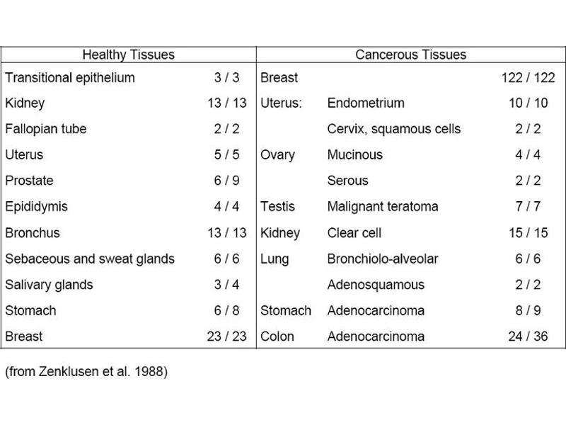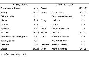 Immunohistochemistry on: Frozen sections: 0.5 μg/mL (1/200). Paraffin sections: 4 μg/mL (1/25), Proteinase K pretreatment for antigen retrievalrecommended. Suggested positive control: Human uterus. Antigen Distribution: In contrast to MCA producing tumors, the b-12 related antigen is onlylocated at the MCA producing sites such as glandular cell surfaces or glandular tubuli. InMCA producing tumors, where cells become disorganized, the b-12 antigen is secreted intostromal tissue and blood vessels. (See Table 1. )
