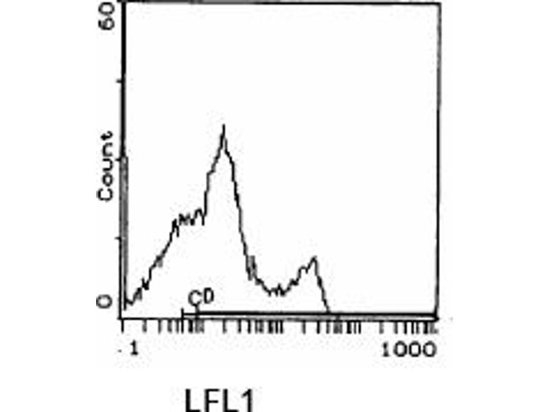- Antibody Concentration: 1 µg/10e6 cellsStrains Tested: BALB/c, C57BL/6, C3H/He, AKR/JPositive control: BALB/c, C57BL/6, C3H/He, AKR/JFlow CytometryAnalysis: 1. Prepare cell suspension in Media A. For cell preparations, deplete the redblood cell population with cell separation medium. 2. Wash 2 times. 3. Resuspend the cells to a concentration 2x107 cells/ml in media A. Add 50 µl of thissuspension to each tube (each tube will then contain 1x106 cells, representing one test). 4. To each tube add 0. 2 µg of ABIN114132 per 1x106 cells*. 5. Vortex the tubes to ensure thorough mixing of antibody and cells. 6. Incubate the tubes for 30 minutes at 4°C. 7. Wash 2 times at 4°C. 8. Add 100µl of secondary antibody (f. e. FITC Goat anti-hamster Ig) at a dilutionrecommended by the manufacturer. PLEASE NOTE: Do not use PE Goat a hamster IgG as the secondary antibody. 9. Incubate tubes at 4°C for 30-60 minutes. (It is recommended that the tubes areprotected from light since most fluorochromes are light sensitive). 10. Wash 2 times at 4°C in Media B. 11. Resuspend the cell pellet in 50 µl ice cold Media B. 12. Transfer to suitable tubes for flow cytometric analysis containing 15 µl of propidiumiodide at 0. 5 mg/ml in phosphate buffered saline. (This stains dead cells by intercalatingDNA). Media: A. Phosphate buffered saline (pH 7. 2) + 5% normal serum of host species + sodiumazide ( 100 µl of 2 M sodium azide in 100 mls). B. Phosphate buffered saline (pH 7. 2) + 0. 5% bovine serum albumin + sodium azide (100 µl