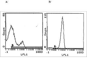 FLOW CYTOMETRY ANALYSIS: 1. Prepare cell suspension in Media A. For cell preparations, deplete the red blood cellpopulation with Lympholyte®-M cell separation medium. 2. Wash 2 times. 3. Resuspend cells to 1x10e6 cells in approximately 50 µl Media A in a microcentrifuge tube(i. e. 50 µl of cells resuspended to 2x10e7 cells/ml). (THE CONTENTS OF 1 TUBE REPRESENTS1 TEST). 4. To each tube add 1 µg of this antibody per 10e6 cells*. 5. Vortex the tubes to ensure thorough mixing of antibody and cells. 6. Incubate the tubes for 30 minutes at 4°C. 7. Wash 2 times at 4°C. 8. Add 100 µl of secondary antibody at a 1/500 dilution. 9. Incubate tubes at 4°C for 30-60 minutes. (It is recommended that the tubes areprotected from light since most fluorochromes are light sensitive). 10. Wash 2 times at 4°C in Media B. 11. Resuspend the cell pellet in 50 µl ice cold Media B. 12. Transfer to suitable tubes for flow cytometric analysis containing 15 µl of propidiumiodide at 0. 5 mg/ml in phosphate buffered saline. (This stains dead cells by intercalatingDNA).