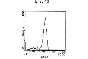 - FLOW CYTOMETRY ANALYSIS: 1. Prepare cell suspension in Media A. For cell preparations, deplete the red blood cellpopulation with Lympholyte®-M cell separation medium. 2. Wash 2 times. 3. Resuspend the cells to a concentration 2x10e7 cells/ml in media A. Add 50 µl of thissuspension to each tube (each tube will then contain 1x10e6 cells, representing one test). 4. To each tube add 1. 0-0. 5 µg of this antibody per 1x10e6 cells*. 5. Vortex the tubes to ensure thorough mixing of antibody and cells. 6. Incubate the tubes for 30 minutes at 4°C. 7. Wash 2 times at 4°C. 8. Add 100 µl of secondary antibody (FITC Goat anti-hamster Ig) at a 1/70 dilution. PLEASENOTE: Do not use PE Goat a hamster IgG as the secondary antibody. 9. Incubate tubes at 4°C for 30-60 minutes. (It is recommended that the tubes areprotected from light since most fluorochromes are light sensitive). 10. Wash 2 times at 4°C in Media B. 11. Resuspend the cell pellet in 50 µl ice cold Media B. 12. Transfer to suitable tubes for flow cytometric analysis containing 15 µl of propidiumiodide at 0. 5 mg/ml in phosphate buffered saline. (This stains dead cells by intercalatingDNA). MEDIA: A. Phosphate buffered saline (pH 7. 2) + 5% normal serum of host species + sodium azide (