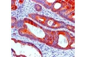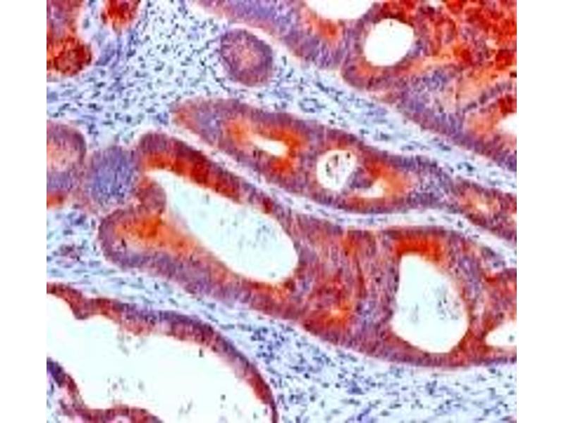 Cytokeratin 20 is a 46 kDa intermediate filament protein whose expression is restricted primarily to gastric and intestinal epithelium, urothelium, and Merkel cells. This antibody is highly specific to cytokeratin 20 and shows no cross-reactivity with other IFPs. Cytokeratin 20 is a unique type I keratin that is expressed in adenocarcinomas of the colon stomach, pancreas and bile system. It is also expressed in mucinous ovarian tumors, transitional cell carcinomas of the urinary tract, and Merkel cell carcinomas. This antibody is essentially non-reactive in squamous cell carcinomas and adenocarcinomas of the breast, lung, and endometrium, non-mucinous tumors of the ovary, and small cell carcinomas. This antibody is often used in conjunction with CK7 and other antibodies to distinguishing colon carcinomas (CK20+), from ovarian, pulmonary, and breast carcinomas.Synonyms: CK20, Cytokeratin 20, K20, KRT20, Keratin type I cytoskeletal 20, Keratin-20, Protein IT