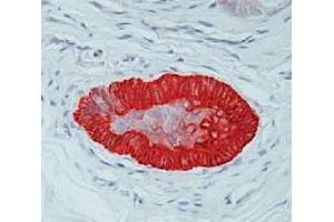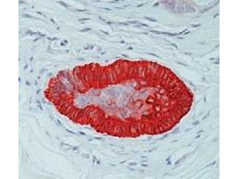 Immunoflourescence. Immunohistochemistry on Paraffin Embedded Sections: 1/25-1/75 dilution in an ABCmethod (30 minutes at room temperature). Requires high temperature antigen unmaskingwith 10 mM citrate buffer, pH 6.0 prior to immunostaining. Recommended Positive Control: Skin.