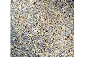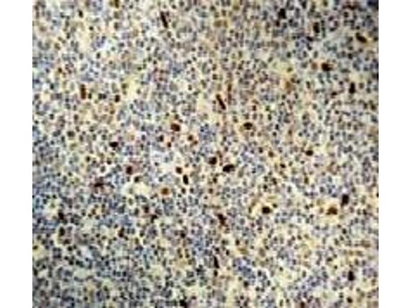 Immunohistochemsistry on Frozen and Formalin-Fixed Paraffin Embedded Sections: Use adilution of 1/25-1/50 in an ABC method (30 minutes at room temperature). Formalin fixed paraffin embedded tissue sections require high temperature antigenunmasking with 10 mM citrate buffer, pH 6.0 prior to immunostaining. Recommended Positive Control: Tonsil.
