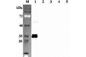 - Recognizes human sirtuin 5 (intact form). Detects a band of ~37 kDa by Western blot.