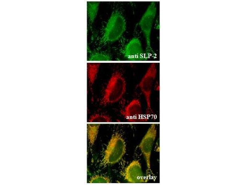 SLP-2 (stomatin-like protein 2) is an unusual stomatin homolog. IT is a mitochondrial protein and functions in energy process by MMP maintenance, and subsequently affecting cell motility, proliferation and chemosensitivity. SLP-2 was identified as a cancer-related gene overexpressed in human ESCC, lung cancer, laryngeal cancer, and endometrial adenocarcinoma. In tumor cells, SLP-2 promotes cell growth, cell adhesion, and tumorigenesis.