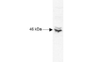 This product was prepared from monospecific antiserum by delipidation and Immunoadsorption against an E.coli lysate immobilized on agarose beads. This antibody may react non-specifically with other proteins. A partial cross-reactivity is observed against CREM-1 protein.