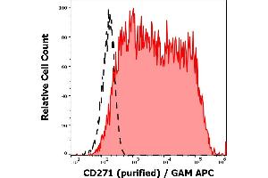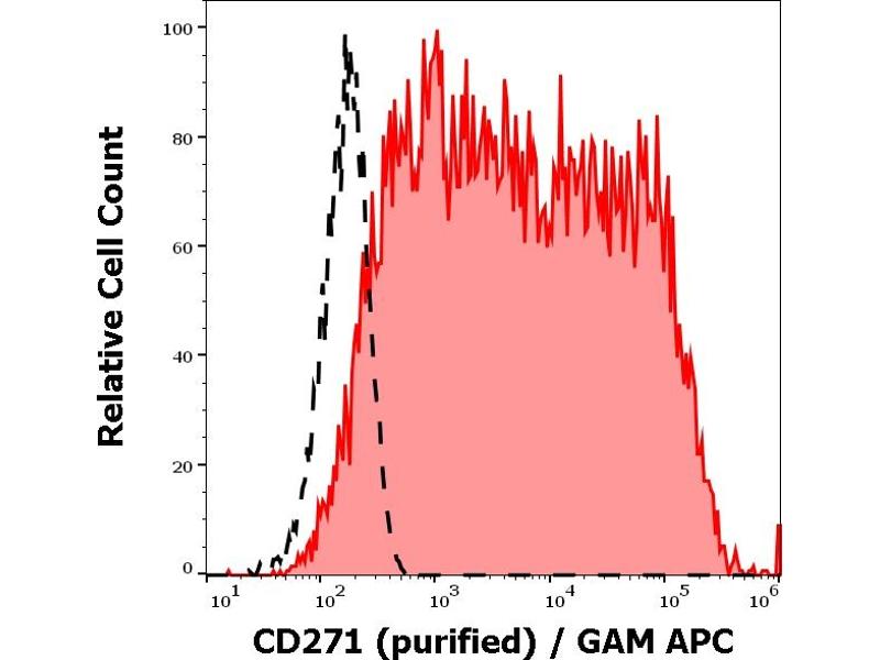 Nerve growth factor receptor,CD271 / NGFR, also known as p75NGFR or p75NTR, is a 75 kDa low affinity receptor for the NGF (nerve growth factor), BDNF (brain-derived growth factor), and other neurotrophins, such as NT3 and NT4/5. Unlike other members of the tumor necrosis factor receptor superfamily of transmembrane proteins, CD271 has unique intracellular domain structure (lacks catalytic activity) and downstream signaling partners. Triggered by its ligands CD271 affects growth, differentiation, migration and death of the nervous system cells.,TNFRSF16, NGFR, p75NTR, p75NGFR