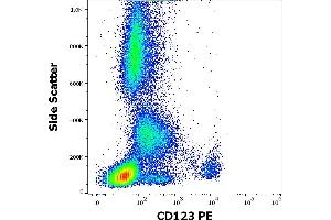 Interleukin 3 receptor subunit alpha,CD123 is the alpha chain of interleukin 3 receptor (IL-3R alpha). This subunit heterodimerizes with the interleukin 3 receptor beta chain (CD131), which is shared with other receptors. CD123 interacts with IL-3 specifically, but with low affinity, and association with the beta subunit confers high affinity binding to the receptor heterodimer. Both chains are required for signaling, but receptor activation and signal transduction depend on IL-3 binding to CD123 as the initial step.,IL3RA, MGC34174, hIL-3Ra