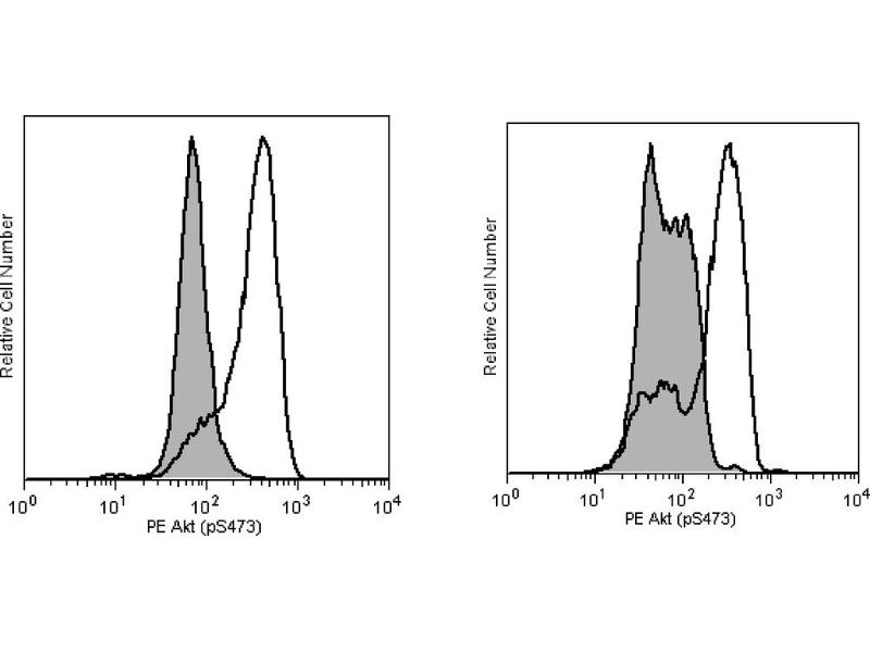 Akt [also known as PKB (Protein kinase B) or RAC-PK (Related to the A and C kinases)] is a family of serine/threonine kinases that contains a pleckstrin homology (PH) domain. PH domains play important roles in signal transduction. There are three known isoforms of Akt in mammalian cells [Akt1 (alpha), Akt2 (beta) and Akt3 (gamma)], they are thought to be regulated similarly. Akt is activated by insulin and growth factors by a mechanism involving phosphoinositide 3-OH kinase. Phosphoinositide 3-OH kinases products bind to the PH domain, resulting in translocation of Akt to the plasma membrane and activation of Akt to phospho-Akt by upstream kinases. Akt is phosphorylated within the activation loop at threonine 308 and the C-terminus at serine 473 (S473). Phospho-Akt promotes cell survival by inhibiting apoptosis. Specifically, phospho-Akt1 has been shown to phosphorylate Bad, a member of the Bcl-2 family that promotes cell death. This phosphorylation results in the inactivation of the proapoptotic function of Bad. The Akt molecule is thus considered to link extracellular survival signals (growth factors) with the apoptotic machinery (BAD). Akt is also a key mediator of the metabolic effects of insulin. Additionally, Akt has been referred to as an oncogene because it has increased activity in a number of tumors. The M89-61 antibody recognizes Akt phosphorylated at S473. This phosphorylation site is shared by all three isoforms of Akt. The homologous phosphorylation sites in Akt2 and Akt3 are S474 and S472, respectively. Synonyms: Akt1, Akt2, Akt3, PKBalpha, PKBbeta, PKBgamma, RAC-PKalpha, RAC-PKbeta, RAC-PKgamma, STK-2