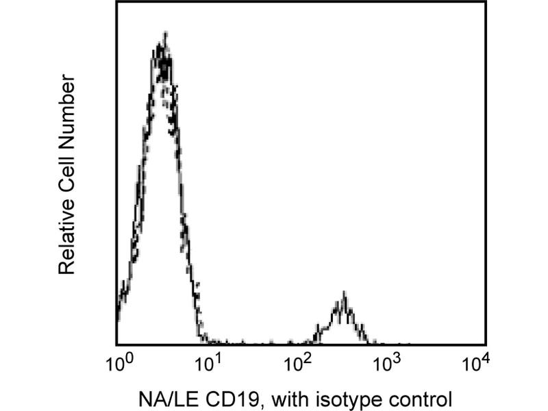 The HIB19 monoclonal antibody specificially binds to the 95 kDa type I transmembrane CD19 glycoprotein. CD19 is expressed during all stages of B-cell maturation and differentiation, except on plasma cells. CD19 is also present on follicular dendritic cells. It is not found on T cells or on normal granulocytes. CD19 is a signal transduction molecule that regulates B cell development, activation, proliferation and differentiation. It associates with the complement receptor 2 (CD21), TAPA-1 (CD81), Leu 13, and/or MHC class II to form a signal transduction complex on the surface of B cells. Anti-CD19 clone HIB19 partially blocks the binding of clone B43, another CD19-specific monoclonal antibody.