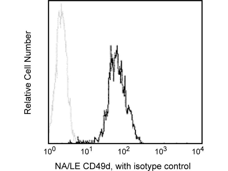 The 9F10 monoclonal antibody specifically reacts with the integrin alpha4 chain, that is expressed as a heterodimer with either of two beta integrin subunits, beta1 (CD29) or beta7. The alpha4beta1 integrin (VLA-4) is expressed on lymphocytes, monocytes, thymocytes, NK cells, and several B- and T-cell lines, and mediates binding to VCAM-1 (CD106) and the CS-1 region of fibronectin. The alpha4beta7 integrin has a similar tissue distribution, except it is found on only a small subpopulation of thymocytes. Integrin alpha4beta7 also binds fibronectin and VCAM-1, and has been shown in the mouse to preferentially bind the mucosal vascular addressin molecule, MAdCAM-1. This antibody is useful for studies of the expression by and function of cells that express alpha4 chain-containing integrins. Synonyms: Integrin alpha4 chain, Integrin alpha 4, ITGA4, IA4, alpha 4 subunit of VLA-4