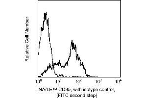 1. Maintain cells in culture with 10% FBS medium, change the medium one day before starting the induction of apoptosis. Harvest and pellet the cells, resuspend in 10% FBS medium at a density of 0.5-1.0 x 10^6 cells/ml. 2. In a 96-well microtiter plate, add 2.5 µg/50 µl CD95 NA/LE™, 0.5 µg/50 µl rProt G, 0.5-1.0 x 10^5 cells and 10% FBS medium to a total volume of 200 µl. Negative controls should consist of: 1) 0.5-1.0 x 10^5 cells with 10% FBS medium alone (200 µl total volume), and 2) 0.5-1.0 x 10^5 cells with 0.5 µg/50 µl rProtG and 10% FBS medium. 3. Incubate the 96-well plate at 37°C, 5% CO2, for 12-24 hours. Traditionally, apoptosis has been observed by light microscopy, MTT, or gel electrophoresis (DNA fragmentation). Investigators may be interested in several products offered by BD Biosciences that may be used for the detection of apoptotic cells by flow cytometry: ApoDirect™ Kit (Cat. No. 556381), ApoBRDU™ Kit (Cat. No. 556405) and Annexin V-FITC (Cat. No. 556420, Cat. No. 556419). Because these methods vary in sensitivity, it may be necessary to titer the rProtG and/or CD95 NA/LE™ to obtain optimal results. Notes: The suggestions given in this procedure are based on conditions that were found to be optimal for the induction of apoptosis by anti-human CD95 (Fas). Studies have shown that the addition of protein G can significantly enhance the efficiency of DX2 in this type of functional assay. It is important to note that there is a great deal of variation between cell lines in the level of apoptosis that can be induced through the Fas receptor. It has been reported that, although some cells express the Fas antigen, they do not necessarily undergo Fas-mediated apoptosis (i.e., the Fas antigen expressed may be anti-Fas sensitive or insensitive). Daudi, Jurkat, and HPB-ALL cells are good positive controls as they are strongly induced by anti-Fas to undergo apoptosis.