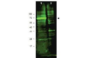 ELISA (1/14,000-1/80,000). Westen blot (1/1,500-1/8,000), Expect a band approximately 72 kDa in size correspondingto Hif3 α protein by western blotting in the appropriate cell lysate or extract. Other applications not tested. Optimal dilutions are dependent on conditions and should be determined by the user.