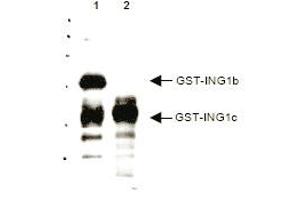 This affinity purified antibody was prepared from whole Goat serum produced by repeated immunizations with a synthetic peptide corresponding aa 285-296 of Human p33 ING1 protein (Inhibitor of growth family, member 1). Remarks: This sequence shows 100% homology to all splice variants for ING1.