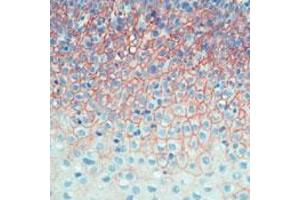 - CD44 variant 6 is a cell surface glycoprotein expressed on lymphocytes, monocytes, and granulocytes. The CD44 Molecule belongs to a family of cellular adhesion molecule found on a wide range of normal and malignant cells in epithelial, mesothelial and haematopoietic tissues. CD44 is a single gene with 20 exons, of which 10 are normally expressed to encode the basic CD44 (H-CAM) molecule. The additional 10 exons (v1 to v10) are only expressed by alternative splicing of the nuclear RNA. The expression of specific cell adhesion molecule CD44 splice variants has been shown to be associated with metastasis and poor prognosis in certain human malignancies, such as breast cancer.Synonyms: CD44, CDw44, ECMR-III, Epican, Extracellular matrix receptor-III, GP90 lymphocyte homing/adhesion receptor, HUTCH-I, Heparan sulfate proteoglycan, Hermes antigen, Hyaluronate receptor, LHR, MDU2, MDU3, MIC4, PGP-1, Phagocytic glycoprotein I