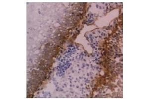 Flow Cytometry (1/25-1/100): Use 10 μL of the suggested working dilution to label 10^6 cells in 100 μL. Immunoprecipitation. Western blot. Immunohistochemistry on Frozen Sections (1/500-1/1000). Does not work on Paraffin Sections.