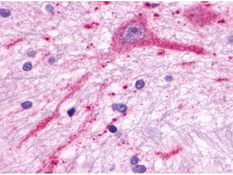 MCHR2/GPR145 is a Melanin-Concentrating Hormone Receptor. Melanin-concentrating hormone plays an important role in the control of feeding behaviors and energy metabolism. Unlike MCH1, MCH2 signaling is not sensitive to pertussis toxin, and MCH2 cannot reduce forskolin-stimulated cAMP production. MCHR2/GPR145 is expressed predominantly in the brain. One EST has been isolated from a brain library.Synonyms: G-protein coupled receptor 145, GPRv17, MCH receptor 2, MCH-2R, MCH-R2, MCHR-2, Melanin-concentrating hormone receptor 2, SLT