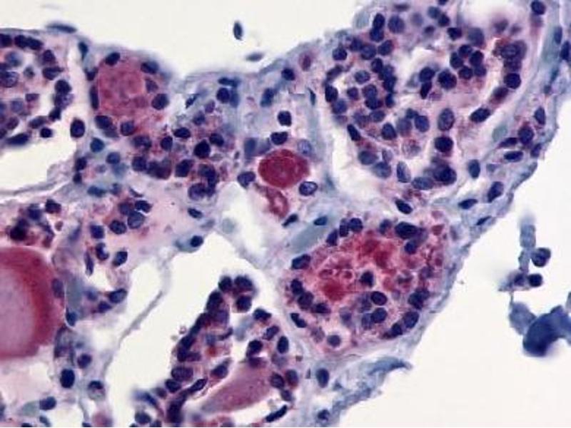 Thyrotropin Receptor, a Glycoprotein Hormone Receptor, plays a central role in controlling thyroid cell metabolism. The TSH receptor can interact with both TSH and autoantibodies against the TSH receptor (thyroid-stimulating immunoglobulins, TSI). Mutations in the receptor are the cause for hyperthyroidism such as gestational hyperthyroidism (hypersensitivity to chorionic gonadotropin) and Grave's disease (autoimmune hyperthyroidism). Multiple isoforms of the thyrotropin receptor are produced by altervative splicing. The thyrotropin receptor has been reported in adipose, adrenal, brain, eye, heart, kidney, skin, thymus, and thyroid. ESTs have been isolated from brain, placenta, and thyroid libraries.Synonyms: LGR3, TSH-R, TSH-receptor, Thyroid-stimulating hormone receptor