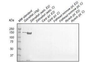 - Vitellogenin purified from whole body homogenate of 17ß-estradiol-treated zebrafish.