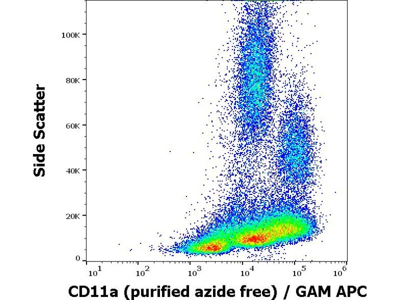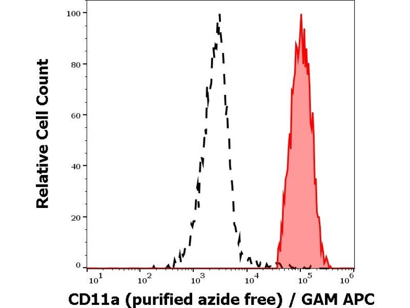 Functional application: The antibody MEM-25 partially blocks binding of LFA-1 complex to ICAM-1. Immunoprecipitation: Excellent antibody for immunoaffinity purification of LFA-1 complex. Flow cytometry: Recommended dilution: 2 μg/mL.