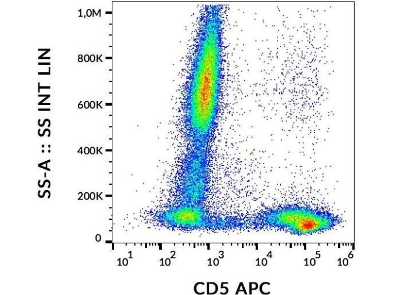The mouse monoclonal antibody CRIS1 reacts with an extracellular epitope of CD5, a 67 kDa single-chain transmembrane glycoprotein expressed on mature T lymphocytes, most of thymocytes and B lymphocytes subset (B-1a lymphocytes).