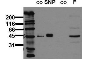 ELISA: Use at 0.05 μg/mL. Western Blot: 0.5 μg/mL for HRPO/ECL detection. Recommended blocking buffer: Casein/Tween 20 based blocking and blot incubationbuffer AS00002BU-N or AS00002BU-L. Flow Cytometry. Included Positive Control: Cell lysate from Forskolin-treated HepG2 cells (See Protocols formore details). Other applications not tested. Optimal dilutions are dependent on conditions and should be determined by the user.