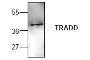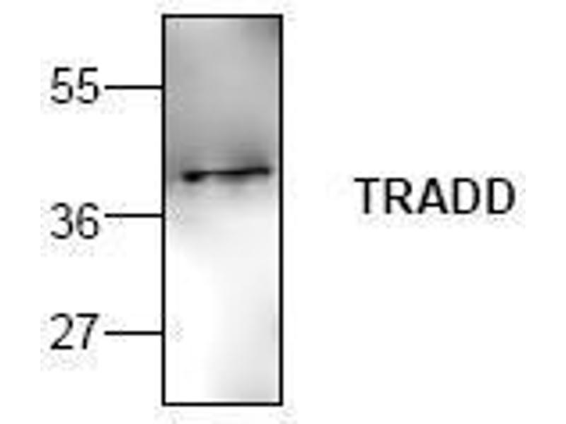 TRADD (TNF-R1-associated death domain) is a 34 kDa protein that associates with the death domains of both FAS and TNF-R1 via their DDH regions. Overexpression of TRADD leads to NFκB activation and apoptosis in the absence of TNF.Synonyms: TNFR1-associated DEATH domain protein, TNFRSF1A-associated via death domain, Tumor necrosis factor receptor type 1-associated DEATH domain protein