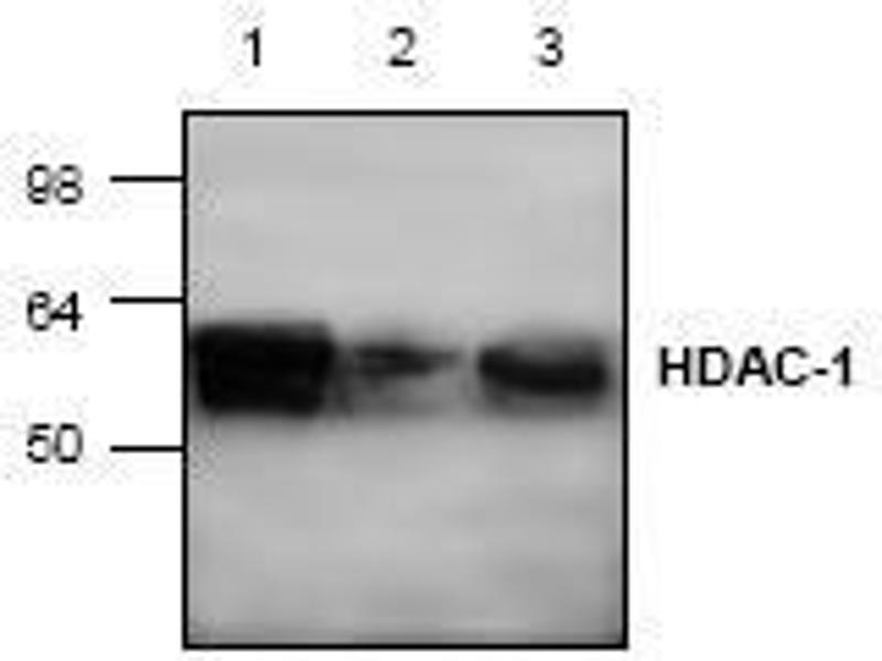 - The antibody detects the 62 kDa histone deacetylase 1. It does not cross-react with other HDAC proteins including HDAC2, 3, 4, 5, 6, 7, and 8.