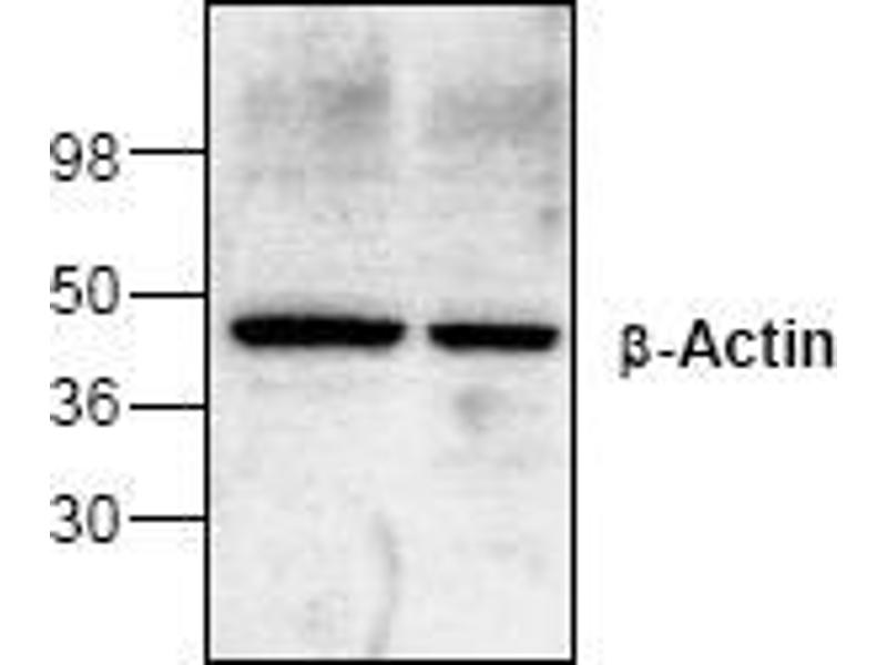 - The antibody recognizes 45 kDa beta-Actin.