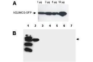 Immunogen: This purified antibody was prepared from rabbit serum after repeated immunizations with recombinant human SUMO-3 protein.