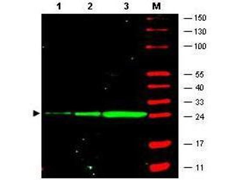 Immunogen: Recombinant Green Fluorescent Protein (GFP) fusion protein corresponding to the full length amino acid sequence (246 aa) derived from the jellyfish Aequorea victoria.