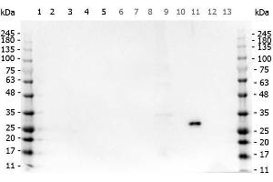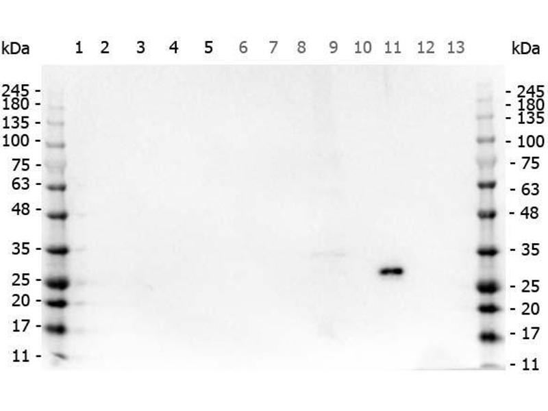 - Anti-GFP antibody was prepared from monospecific antiserum by immunoaffinity chromatography using Green Fluorescent Protein (Aequorea victoria) coupled to agarose beads followed by solid phase adsorption(s) to remove any unwanted reactivities.