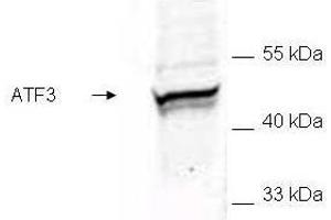Application Note: Affinity purified anti-ATF3 has been tested by ELISA and western blotting against recombinant forms of the protein. Although not tested, this antibody is likely function in most immunoassays including immunofluorescence microscopy, immunohistochemistry.