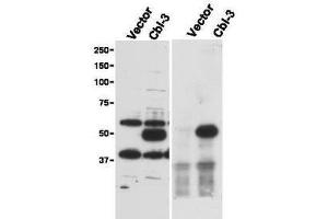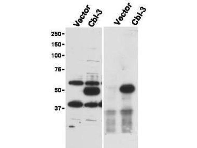 Immunogen: This affinity-purified antibody was prepared from whole rabbit serum produced by repeated immunizations with a synthetic peptide corresponding to the C-Terminal portion of Human Cbl-c.