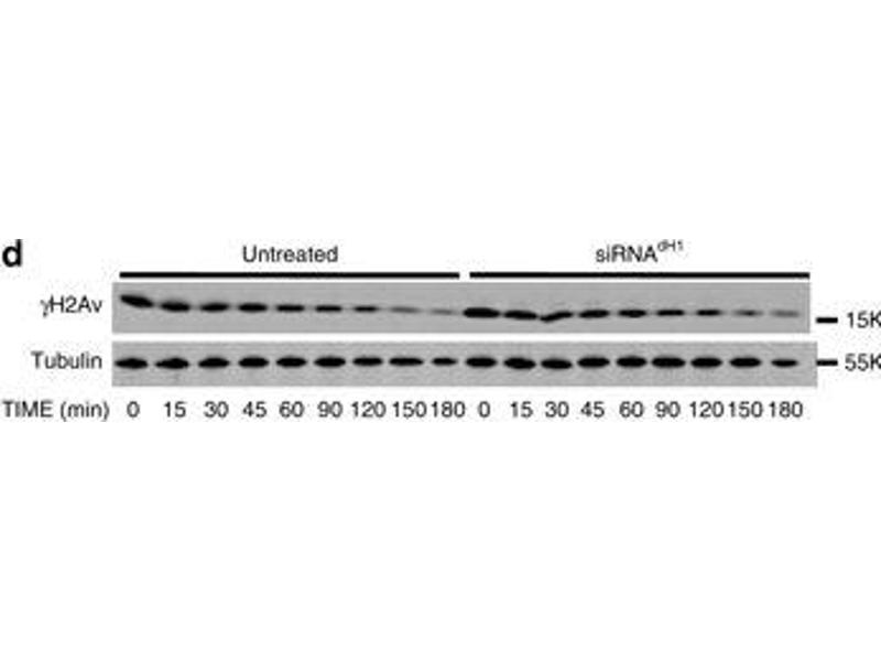 Immunogen: Histone H2AvD pS137 Antibody was prepared from whole rabbit serum produced by repeated immunizations with a synthetic peptide corresponding to the C-Terminal region near amino acids 125-141 of Drosophila melanogaster (fruit fly) H2AvD protein.