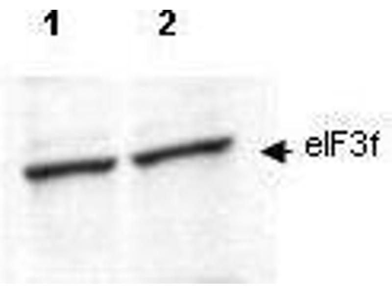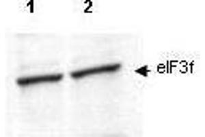 Immunogen: This affinity purified antibody was prepared from whole rabbit serum produced by repeated immunizations with a synthetic peptide corresponding to an internal region near amino acids 100-125 of human eIF3f protein.