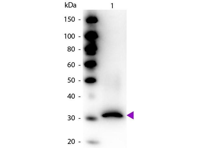 Application Note: Polyclonal anti-RFP is designed to detect RFP and its variants. This rabbit anti-RFP Antibody Biotin Conjugated antibody has been tested by ELISA and Western blot. This product can be used to detect RFP by ELISA (sandwich or capture) for the direct binding of antigen. Biotin conjugated polyclonal anti-RFP used in a sandwich ELISA with unconjugated anti-RFP is well suited to titrate RFP in solution. The detection antibody conjugated to biotin is subsequently reacted with streptavidin conjugated HRP (code # S000-03). Optimal titers for applications should be determined by the researcher.